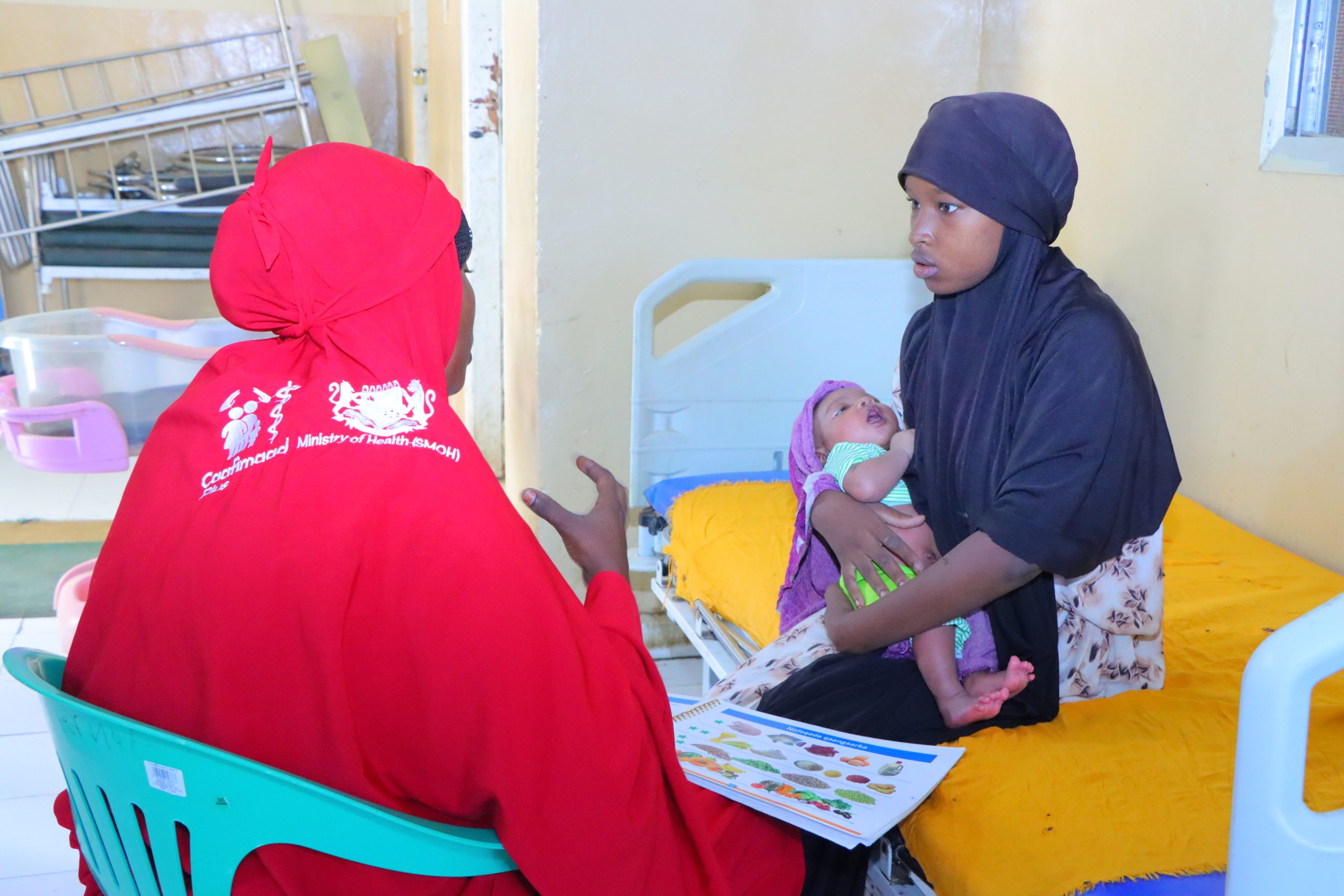 Hodan holds her baby during a counselling session. Caafimaad+ integrated response ensures IYCF is part of nutrition promotion.